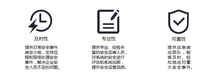 通过专业人员为用户提供漏洞监测、安全设备管理、安全评估与加固、代码安全审计、渗透测试、手机APP安全风险评估与恶意检测以及威胁情报安全通告等多项服务,为用户的网络安全环境提供有效保障。