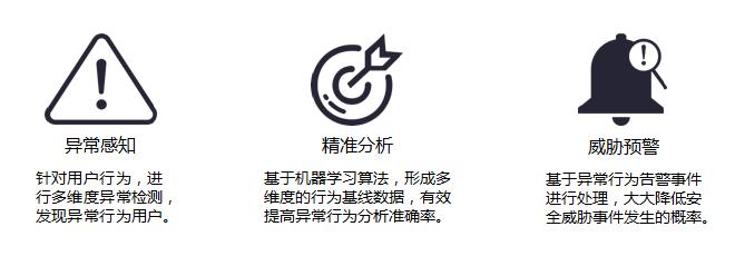 以动态行为基线为基础,多维度分析用户行为数据,感知异常行为告警事件,提前处理,达到安全威胁事件预警的效果。